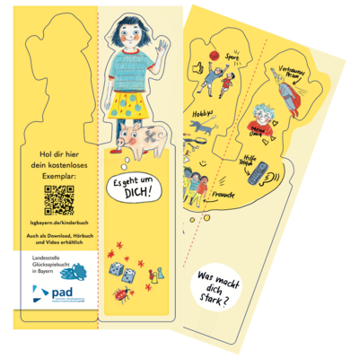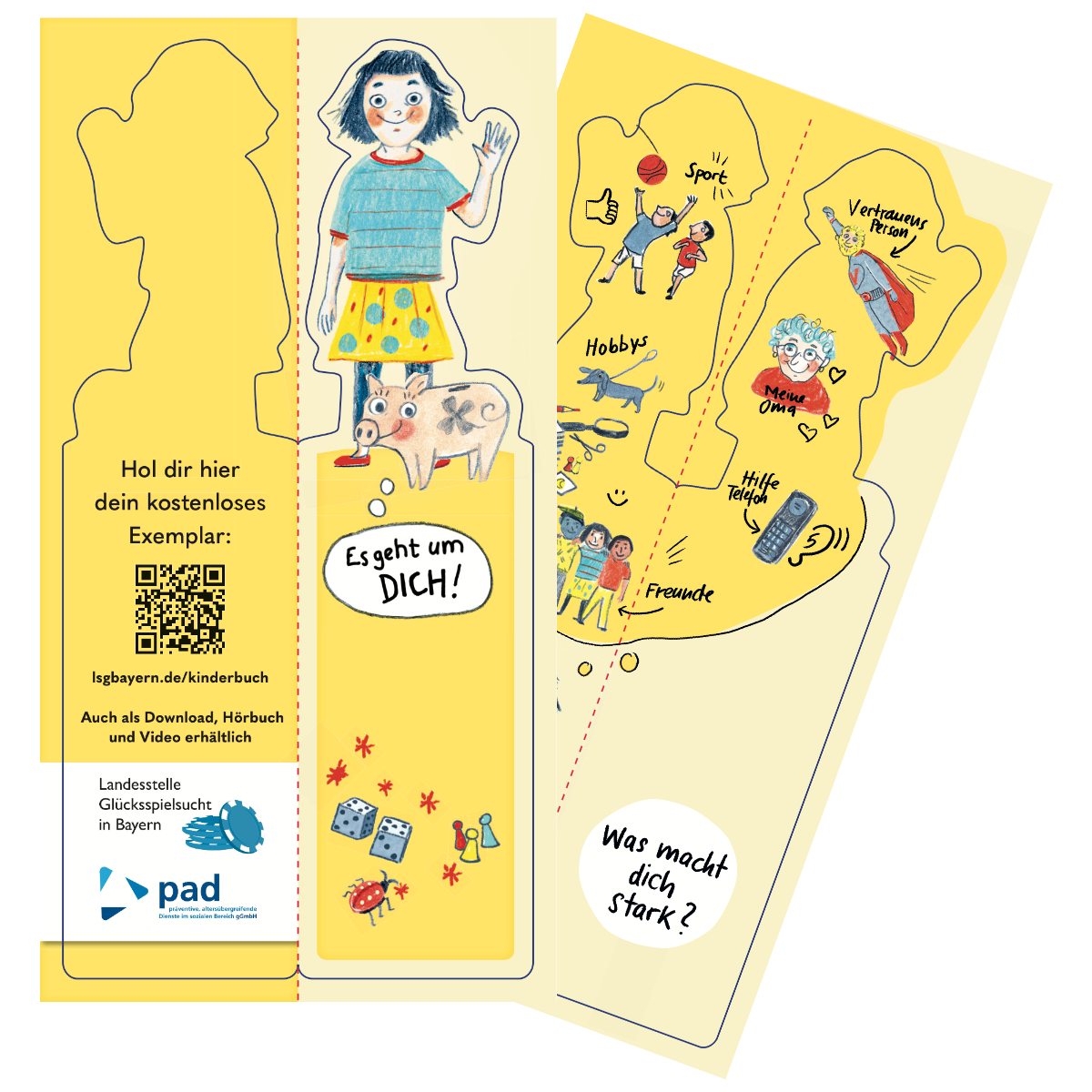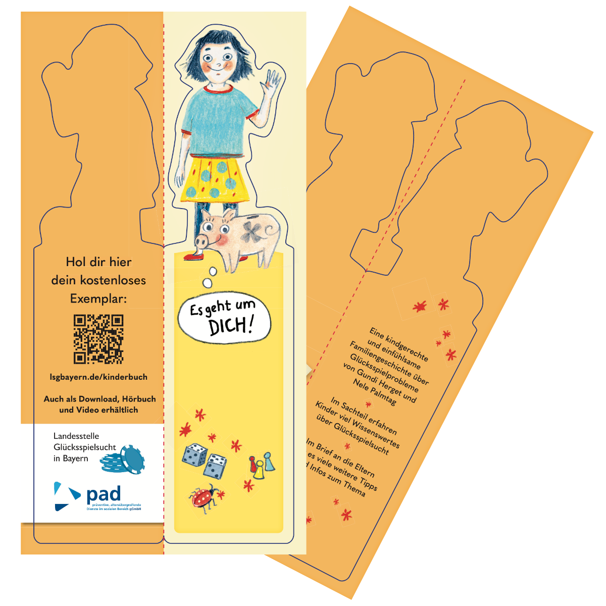 - einmal als Flyer mit Infos zum Buch und Bestellmöglichkeiten zum Auslegen in verschiedenen Beratungsstellen, bei Veranstaltungen oder zum Mitgeben an Menschen in der Beratung